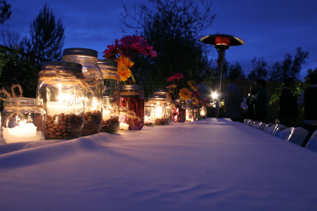 my good friend Lucy helped me pick up 4 cases of small Kerr mason jars, and 4 cases of large jars at Smart and Final. she then peeled apart one of the wide-weave burlap coffee sacks i had in the garage and took apart the threads. we used the longer twines. the leftover shorter twine […]